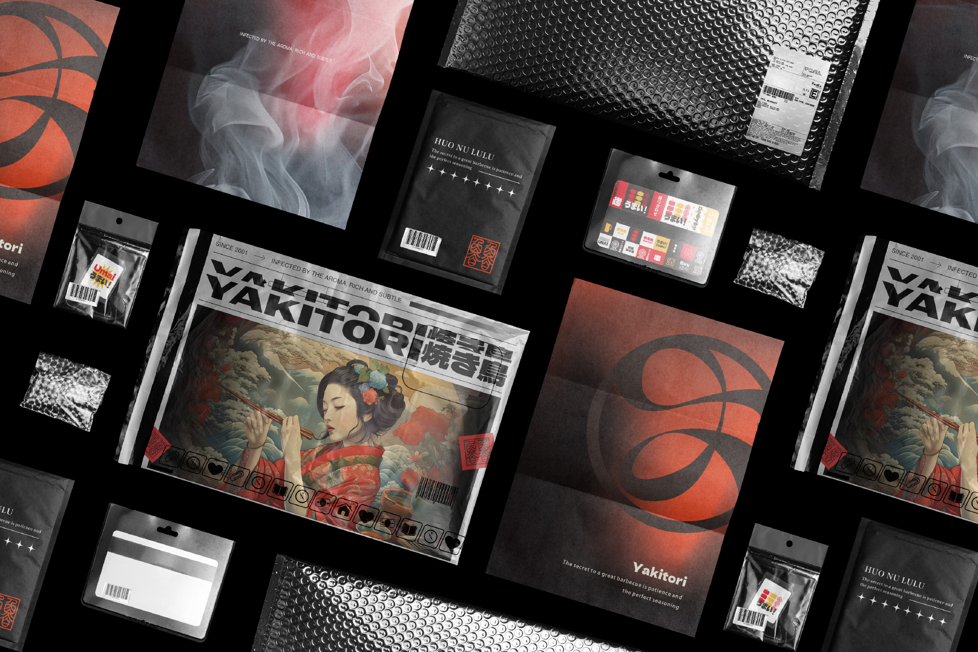 以日式風格的字體靈活搭配出一系列風格,整體氛圍像一種傳統的日本文化和熱情好客。